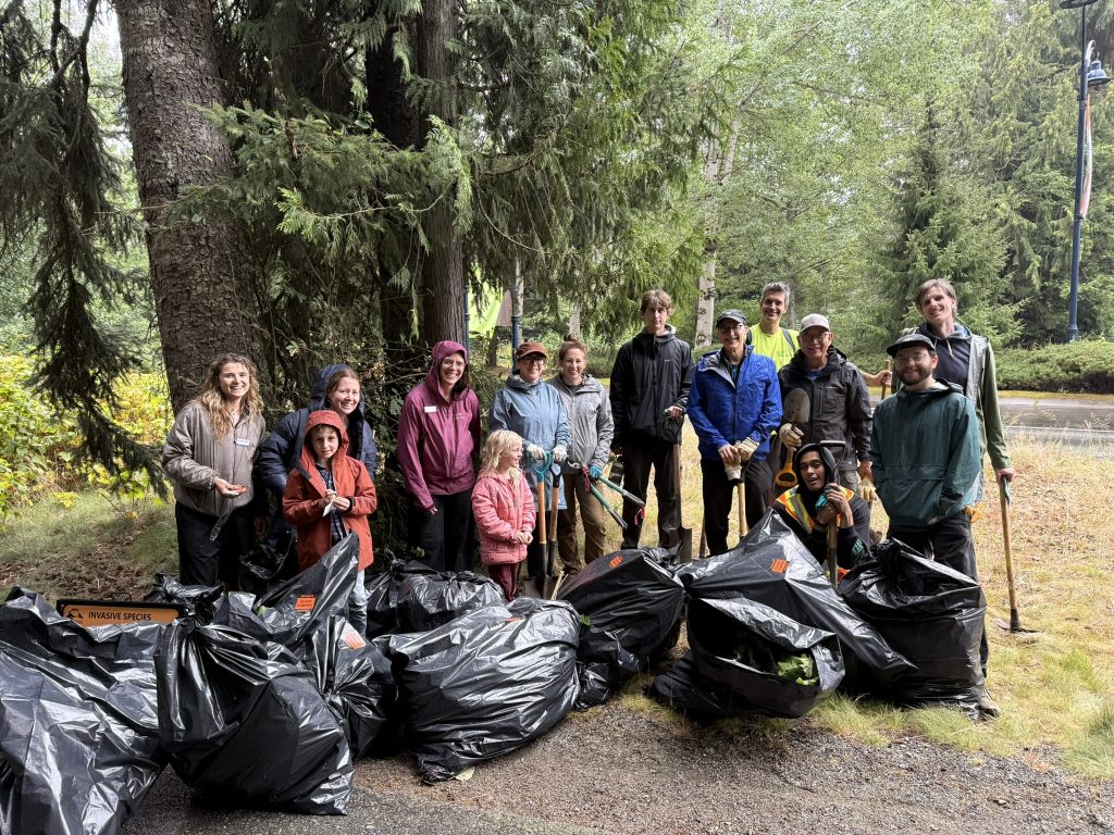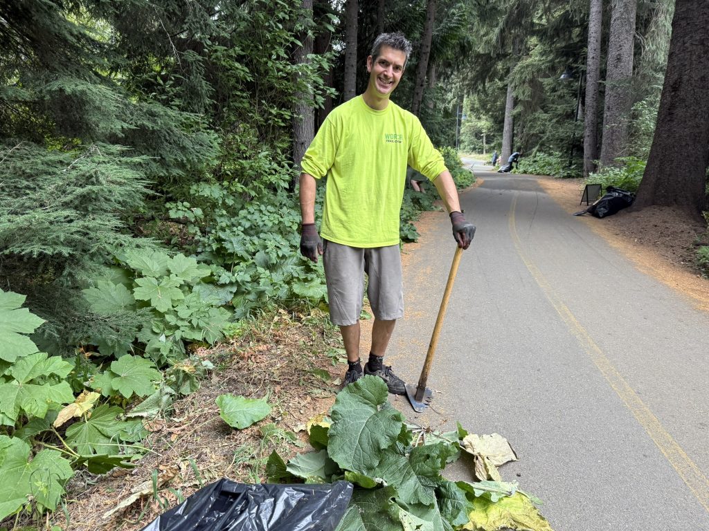 Earlier this week, we hosted an event in collaboration with Patagonia Whistler to remove invasive common burdock from the valley trail in Whistler Village.