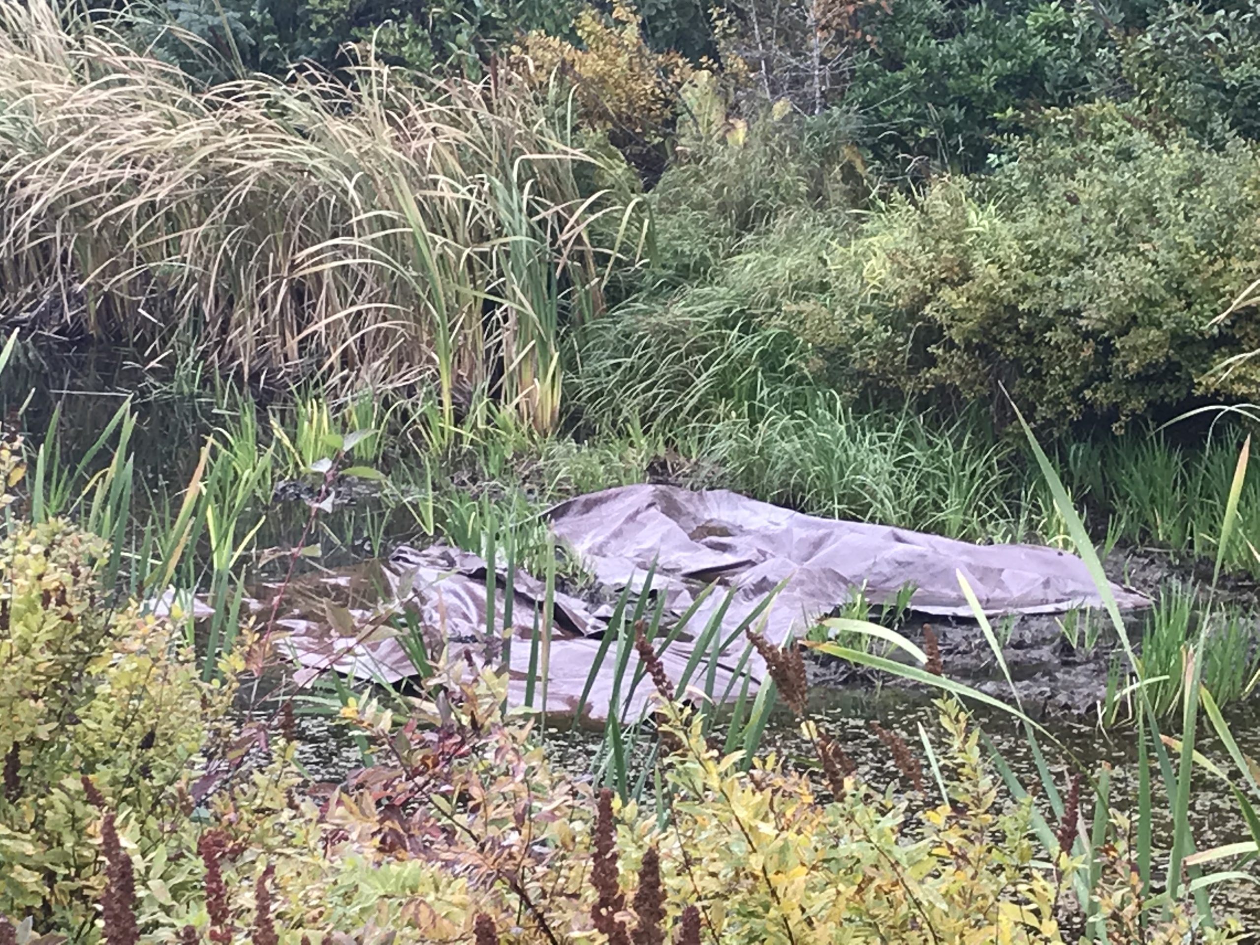 Benthic barriers are used to prevent aquatic invasive plants from growing by blocking sunlight. This is used to control curled pondweed (Potamogeton crispus) and yellow flag iris (Iris pseudacorus).
