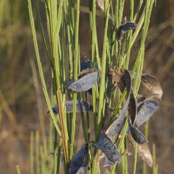 - Flattened, legume-like seedpods that change from bright green to brown or black before they dry out and split.