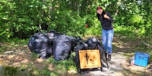 First off, we joined forces with the Squamish River Watershed Society and the Átl’ḵa7tsem / Howe Sound Marine Stewardship Initiative to remove garbage and Scotch broom from the trails and parking lot bordering the Mamquam Blind Channel, in Squamish.